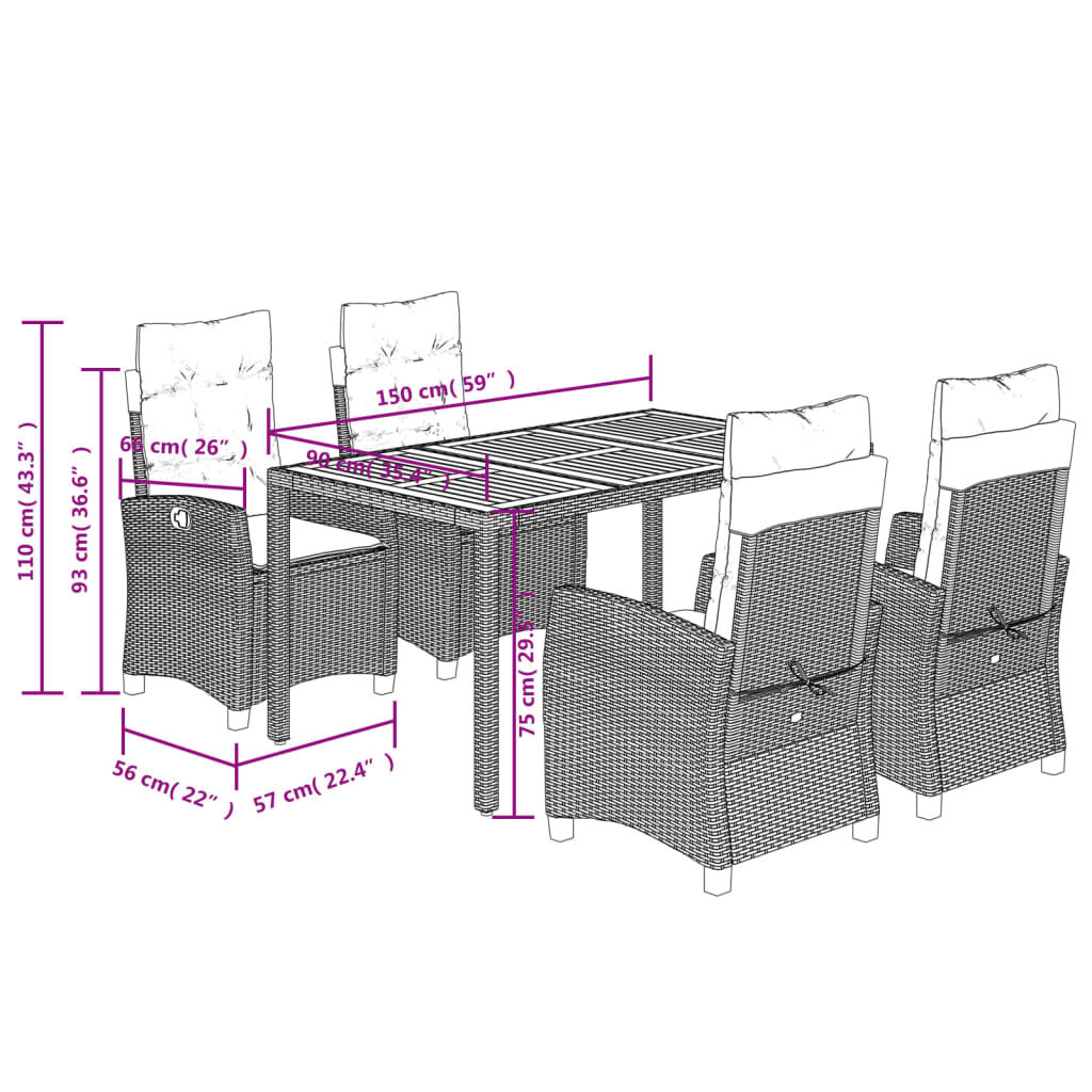$798.86This garden dining set is a great choice for al fresco dining or just relaxing in the garden, backyard, or patio. Durable material: PE rattan, also known as poly rattan, is a strong, low-maintenance synthetic material that looks like natural rattan. It's lightweight, easy to clean, and commonly used for outdoor furniture due to its durability and weather-resistant properties. Adjustable backrest: This garden seat has a handle. You can adjust the backrest to any position by pulling the handle, and quickly return it to its original position.Stable and easy-to-clean tabletop: This garden table has an acacia wood top that is sturdy, durable, and easy to clean with a damp cloth. Comfortable seat experience: This outdoor furniture, complete with thickly padded cushions, offers a comfortable seating experience. Removable and washable cover: These seat cushions feature removable covers for easy washing and maintenance. Good to know:To make sure your outdoor furniture stays beautiful, we recommend protecting it with a waterproof cover.