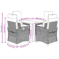 $743.99This garden dining set is a great choice for al fresco dining or just relaxing in the garden, backyard, or patio. Durable material: PE rattan, also known as poly rattan, is a strong, low-maintenance synthetic material that looks like natural rattan. It's lightweight, easy to clean, and commonly used for outdoor furniture due to its durability and weather-resistant properties. Adjustable backrest: This garden seat has a handle. You can adjust the backrest to any position by pulling the handle, and quickly return it to its original position.Glass tabletop: The outdoor table's top is made from strong and durable tempered glass, making it easy to clean with a damp cloth and adding a touch of elegance to your outdoor space. Comfortable seat experience: This outdoor furniture, complete with thickly padded cushions, offers a comfortable seating experience. Removable and washable cover: These seat cushions feature removable covers for easy washing and maintenance. Good to know:To make sure your outdoor furniture stays beautiful, we recommend protecting it with a waterproof cover.