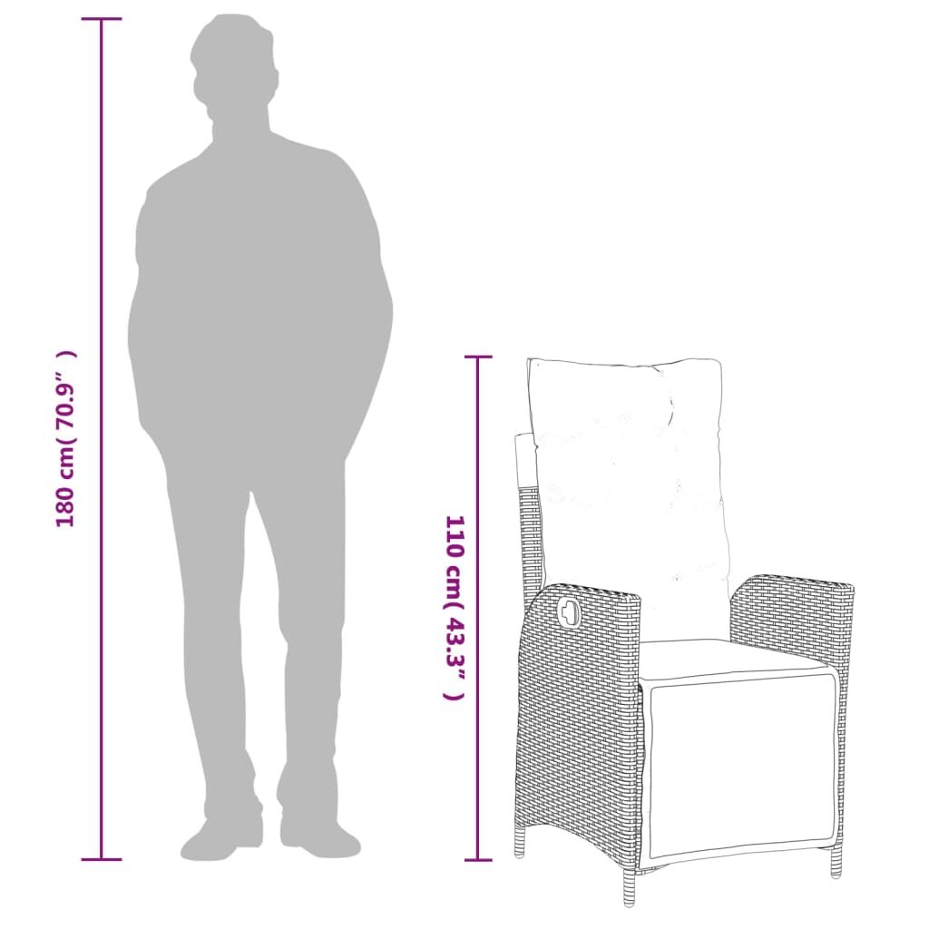 $751.43This garden dining set is a great choice for al fresco dining or just relaxing in the garden, backyard, or patio. Durable material: PE rattan, also known as poly rattan, is a strong, low-maintenance synthetic material that looks like natural rattan. It's lightweight, easy to clean, and commonly used for outdoor furniture due to its durability and weather-resistant properties.Adjustable backrest and footrest: This garden seat has a handle. You can adjust the backrest and footrest to any position by pulling the handle, and quickly return them to their original positions.Comfortable seat experience: This outdoor furniture, complete with thickly padded cushions, offers a comfortable seating experience.Removable and washable cover: These seat cushions feature removable covers for easy washing and maintenance. The back cushions have a flap at the back for easy attachment to the backrests.Glass tabletop: The outdoor table's top is made from strong and durable tempered glass, making it easy to clean with a damp cloth and adding a touch of elegance to your outdoor space. Good to know:To make sure your outdoor furniture stays beautiful, we recommend protecting it with a waterproof cover.