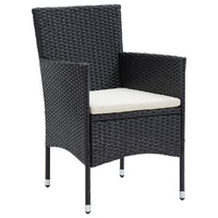 $599.84This garden dining set, with an elegant and contemporary design, is a great choice for dining or relaxing in the garden. Weather-resistant material: Made of weather-resistant and water-resistant PE rattan, this garden dining set is easy to clean, hard-wearing and suitable for daily use.Sturdy frame: The powder-coated steel frames make the outdoor dining set sturdy and stable for daily outdoor use.Practical tabletop: The smooth tabletop of the dining table is made of tempered glass which is easy to clean with a damp cloth. Additionally, the sturdy tabletop is perfect for placing meals, drinks, and other decorative items.Comfortable design: Designed with curved backrests and armrests, these outdoor chairs provide maximum comfort.Extra comfort: The thickly padded cushions provide ultimate comfort during your sitting time. Note:In order to extend the life of your outdoor furniture, we recommend you to protect it with a waterproof cover.Each product comes with an assembly manual in the box for easy assembly.