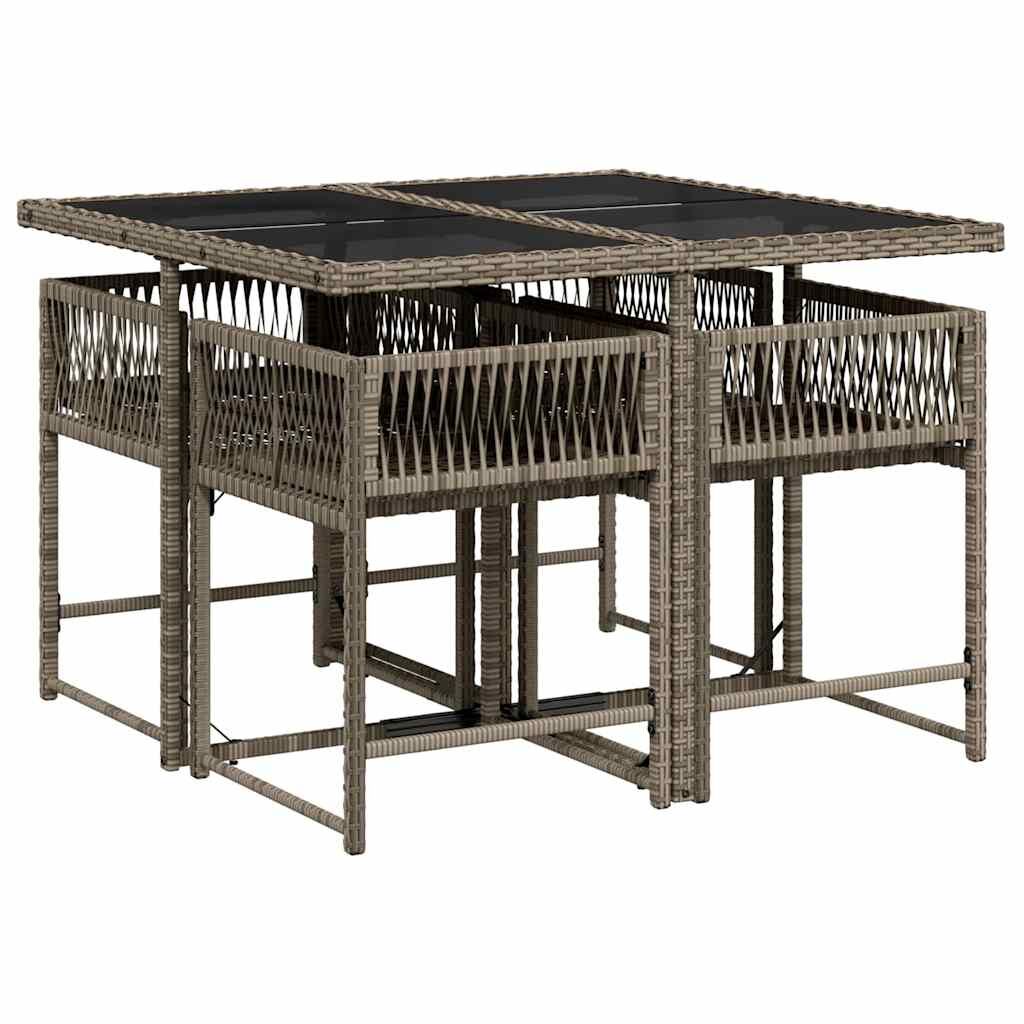 $420.35This garden dining set is a great choice for al fresco dining or just relaxing in the garden, backyard, or on the patio. Durable material: PE rattan, also known as poly rattan, is a strong, low-maintenance synthetic material that looks like natural rattan. It's lightweight, easy to clean, and commonly used for outdoor furniture due to its durability and weather-resistant properties.Compact storage: These chairs have a flap backrest that can be folded down, making it easy to store them under the table. When folded, they neatly fit under the table, forming a space-saving cube shape.Comfortable seat experience: This outdoor furniture, complete with thickly padded cushions, offers a comfortable seating experience.Removable and washable cover: These seat cushions feature removable covers for easy washing and maintenance. The cushion covers have a flap at the back for easy attachment to the backrests.Glass tabletop: The outdoor table's top is made from strong and durable tempered glass, making it easy to clean with a damp cloth and adding a touch of elegance to your outdoor space. Good to know:To make sure your outdoor furniture stays beautiful, we recommend protecting it with a waterproof cover.