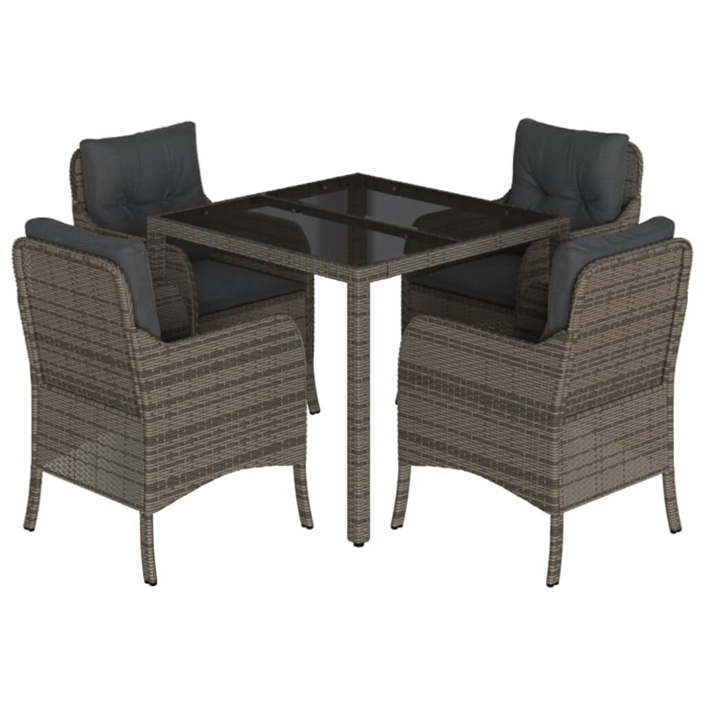 $712.37This garden dining set is a great choice for al fresco dining or just relaxing in the garden, backyard, or patio. Durable material: PE rattan, also known as poly rattan, is a strong, low-maintenance synthetic material that looks like natural rattan. It's lightweight, easy to clean, and commonly used for outdoor furniture due to its durability and weather-resistant properties.Comfortable seat experience: This outdoor furniture, complete with thickly padded cushions, offers a comfortable seating experience.Removable and washable cover: These seat cushions feature removable covers for easy washing and maintenance. The chair cushion covers have a flap at the back for easy attachment to the chairs.Glass tabletop: The outdoor table's top is made from strong and durable tempered glass, making it easy to clean with a damp cloth and adding a touch of elegance to your outdoor space.Robust and stable frame: The powder-coated steel frame ensures the garden furniture is strong and stable for daily outdoor use. Good to know:To make sure your outdoor furniture stays beautiful, we recommend protecting it with a waterproof cover.