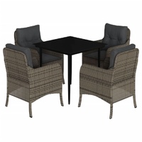 $749.57This garden dining set is a great choice for al fresco dining or just relaxing in the garden, backyard, or patio. Durable material: PE rattan, also known as poly rattan, is a strong, low-maintenance synthetic material that looks like natural rattan. It's lightweight, easy to clean, and commonly used for outdoor furniture due to its durability and weather-resistant properties.Comfortable seat experience: This outdoor furniture, complete with thickly padded cushions, offers a comfortable seating experience.Removable and washable cover: These seat cushions feature removable covers for easy washing and maintenance.Glass tabletop: The outdoor table's top is made from strong and durable tempered glass, making it easy to clean with a damp cloth and adding a touch of elegance to your outdoor space.Robust and stable frame: The powder-coated steel frame ensures that the garden furniture is strong and stable for daily outdoor use. Good to know:To make sure your outdoor furniture stays beautiful, we recommend protecting it with a waterproof cover.