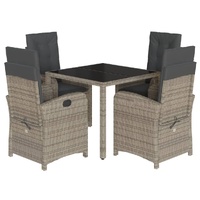 5 Piece Garden Dining Set with Cushions Grey Poly Rattan