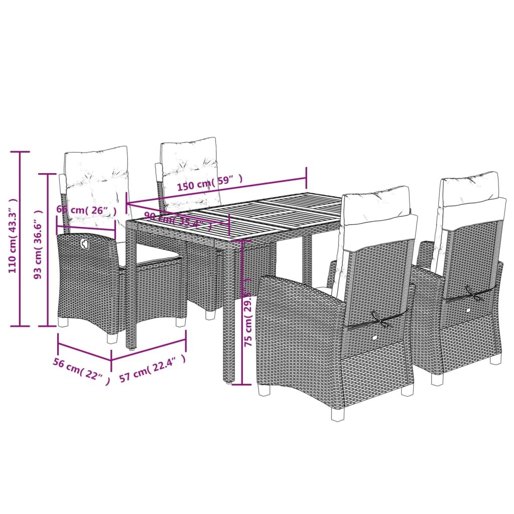 This garden dining set is a great choice for al fresco dining or just relaxing in the garden, backyard, or patio. Durable material: PE rattan, also known as poly rattan, is a strong, low-maintenance synthetic material that looks like natural rattan. It's lightweight, easy to clean, and commonly used for outdoor furniture due to its durability and weather-resistant properties. Adjustable backrest: This garden seat has a handle. You can adjust the backrest to any position by pulling the handle, and quickly return it to its original position.Stable and easy-to-clean tabletop: This garden table has an acacia wood top that is sturdy, durable, and easy to clean with a damp cloth. Comfortable seat experience: This outdoor furniture, complete with thickly padded cushions, offers a comfortable seating experience. Removable and washable cover: These seat cushions feature removable covers for easy washing and maintenance. Good to know:To make sure your outdoor furniture stays beautiful, we recommend protecting it with a waterproof cover.