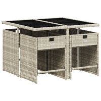 $452.90This garden dining set is a great choice for al fresco dining or just relaxing in the garden, backyard, or on the patio. Durable material: PE rattan, also known as poly rattan, is a strong, low-maintenance synthetic material that looks like natural rattan. It's lightweight, easy to clean, and commonly used for outdoor furniture due to its durability and weather-resistant properties.Compact storage: These chairs have a flap backrest that can be folded down, making it easy to store them under the table. When folded, they neatly fit under the table, forming a space-saving cube shape.Comfortable seat experience: This outdoor furniture, complete with thickly padded cushions, offers a comfortable seating experience.Removable and washable cover: These seat cushions feature removable covers for easy washing and maintenance. The chair cushion covers have a flap at the back for easy attachment to the chairs.Stable and easy-to-clean tabletop: This garden table has a tempered glass table top that is sturdy, durable, and easy to clean with a damp cloth. Good to know: To make sure your outdoor furniture stays beautiful, we recommend protecting it with a waterproof cover.