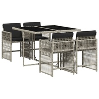 $438.95This garden dining set is a great choice for al fresco dining or just relaxing in the garden, backyard, or patio. Durable material: PE rattan, also known as poly rattan, is a strong, low-maintenance synthetic material that looks like natural rattan. It's lightweight, easy to clean, and commonly used for outdoor furniture due to its durability and weather-resistant properties.Compact storage: These chairs have a flap backrest that can be folded down, making it easy to store them under the table. When folded, they neatly fit under the table, forming a space-saving cube shape.Comfortable seat experience: This outdoor furniture, complete with thickly padded cushions, offers a comfortable seating experience.Removable and washable cover: These seat cushions feature removable covers for easy washing and maintenance. The cushion covers have a flap at the back for easy attachment to the backrests.Glass tabletop: The outdoor table's top is made from strong and durable tempered glass, making it easy to clean with a damp cloth and adding a touch of elegance to your outdoor space. Good to know:To make sure your outdoor furniture stays beautiful, we recommend protecting it with a waterproof cover.