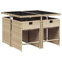 $453.83This garden dining set is a great choice for al fresco dining or just relaxing in the garden, backyard, or on the patio. Durable material: PE rattan, also known as poly rattan, is a strong, low-maintenance synthetic material that looks like natural rattan. It's lightweight, easy to clean, and commonly used for outdoor furniture due to its durability and weather-resistant properties.Compact storage: These chairs have a flap backrest that can be folded down, making it easy to store them under the table. When folded, they neatly fit under the table, forming a space-saving cube shape.Comfortable seat experience: This outdoor furniture, complete with thickly padded cushions, offers a comfortable seating experience.Removable and washable cover: These seat cushions feature removable covers for easy washing and maintenance. The chair cushion covers have a flap at the back for easy attachment to the chairs.Stable and easy-to-clean tabletop: This garden table has a tempered glass table top that is sturdy, durable, and easy to clean with a damp cloth. Good to know: To make sure your outdoor furniture stays beautiful, we recommend protecting it with a waterproof cover.