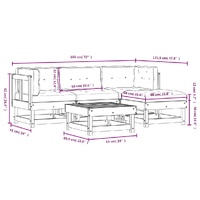 $738.89This wooden garden lounge set, standing out with the slatted design and soft cushions, will make a great addition to your garden, patio, or terrace for enjoying a cosy time with your family or friends. Solid pine wood: Solid pine wood is a beautiful natural material. Pine wood has a straight grain, and the knots give the material its signature, rustic look.Sturdy and stable frame: The wooden frame makes the lounge set sturdy and stable for daily outdoor use.Comfortable seat experience: The backrest and armrest add extra seating comfort for the garden furniture set. Also, the thickly padded cushions provide comfort for your sitting time.Modular design: The sofa set is flexible and easy to move around. You can combine it with other modular segments in the webshop to create your own personal garden lounge set configurations! Good to know:To make sure your outdoor furniture stays beautiful, we recommend protecting it with a waterproof cover.