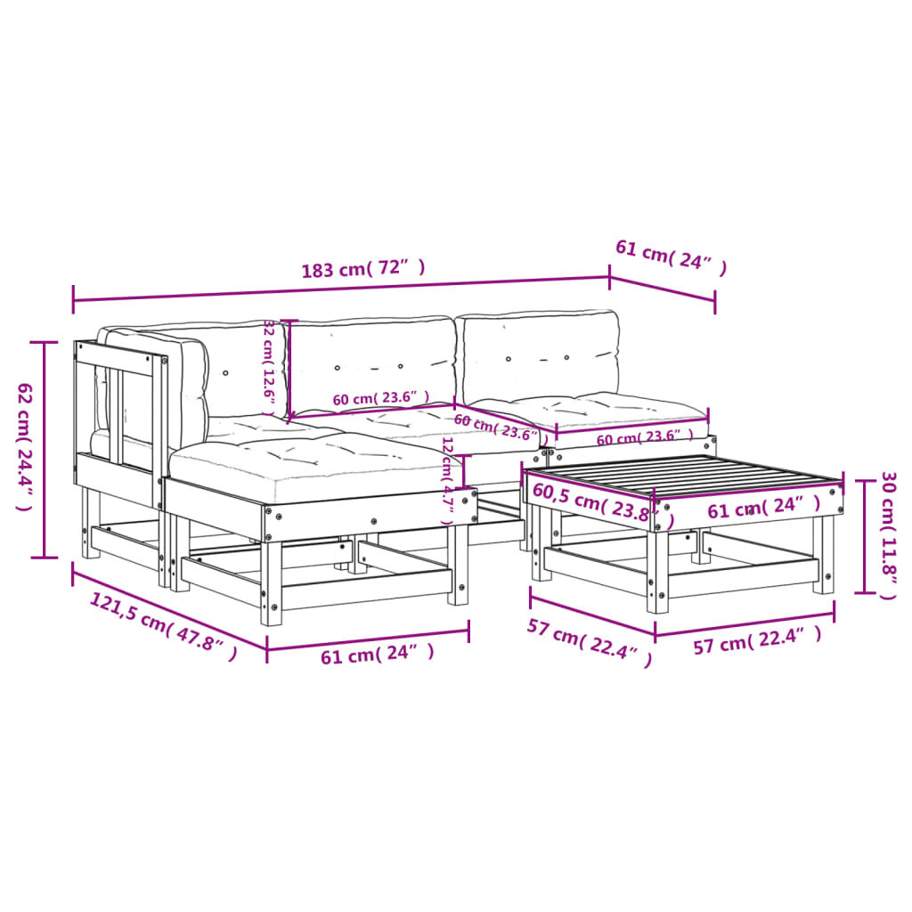 NOW $627.74This wooden garden lounge set, standing out with the slatted design and soft cushions, will make a great addition to your garden, patio, or terrace for enjoying a cosy time with your family or friends. Solid pine wood: Solid pine wood is a beautiful natural material. Pine wood has a straight grain, and the knots give the material its signature, rustic look.Sturdy and stable frame: The wooden frame makes the lounge set sturdy and stable for daily outdoor use.Comfortable seat experience: The backrest and armrest add extra seating comfort for the garden furniture set. Also, the thickly padded cushions provide comfort for your sitting time.Modular design: The sofa set is flexible and easy to move around. You can combine it with other modular segments in the webshop to create your own personal garden lounge set configurations! Good to know:To make sure your outdoor furniture stays beautiful, we recommend protecting it with a waterproof cover.