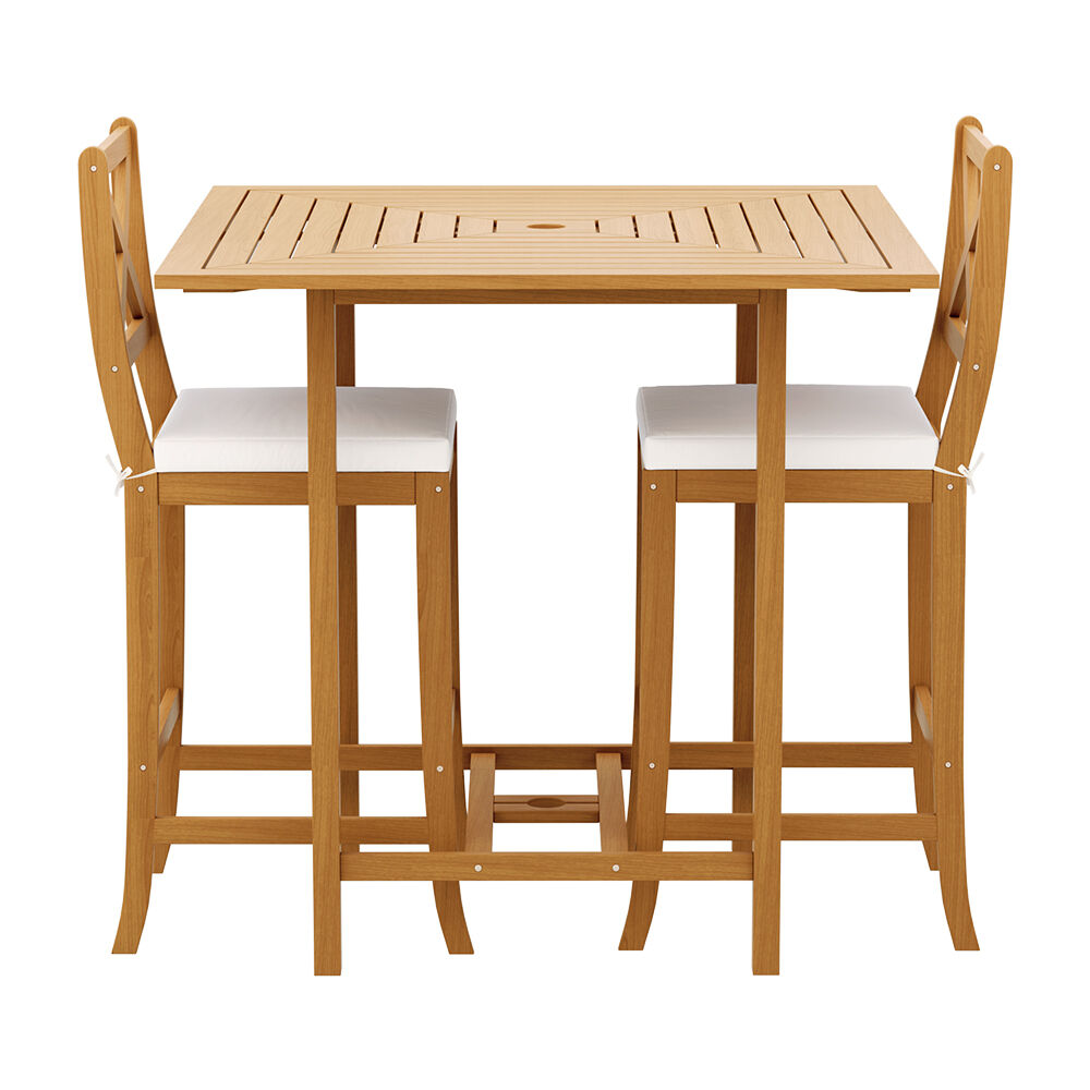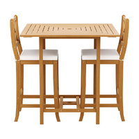 NOW $405.43With summer fast approaching, you can once again join the sunshine with the Gardeon Outdoor Bar Set. Made from solid Acacia wood with a strong and durable finish, the set is designed for outdoor or indoor use in a wide range of weather conditions. The stable structure features a reinforced insert, and the table has a total weight capacity of 45kg. The table and chairs are designed to comfortably seat 4 people for an intimate gathering. The seats are classically designed and completely comfortable with an inclined backrest, built-in footrest, and 5cm thick foam cushions. The cushions feature removable and washable covers for easy cleaning. Relax under the sun with a versatile parasol hole in the middle of the table. With easy and hassle-free assembly the Gardeon Outdoor Bar Set is the perfect addition to any backyard, patio or even sitting room.