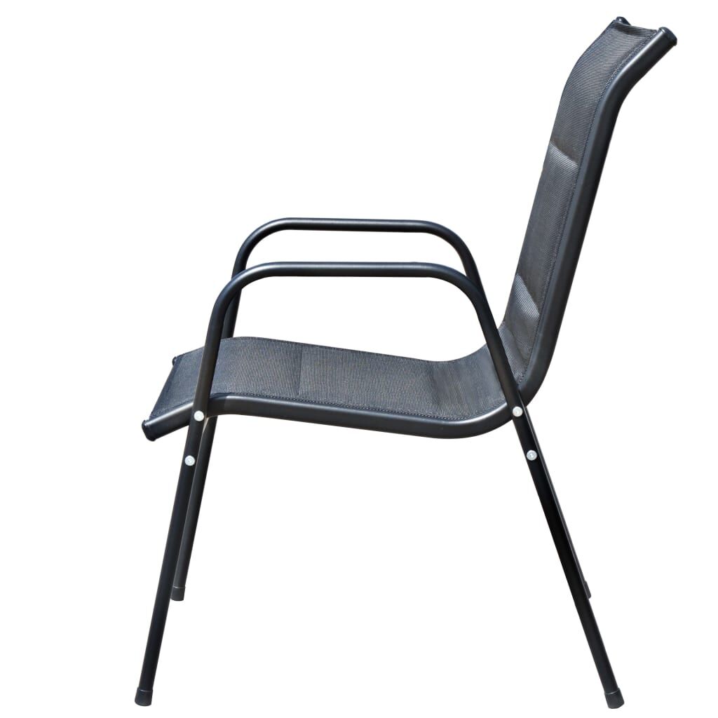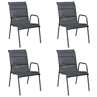 $175.72This sophisticated garden furniture set will become the focal point of your garden, patio, or dining room. The comfortable chairs are constructed from high-quality powder-coated steel. Thanks to the strong textilene fabric with waterproof padding, our chairs are highly comfortable, weather resistant and easy to clean. The chairs are stackable to save space. The table has a 5 mm thick tabletop made of tempered ripple glass, on which you can place drinks, snacks or decorative items. It also has a sturdy powder-coated steel frame that is durable and easy to maintain. With central parasol holes both on the tabletop and at below, you can easily install a large canopy to create some sunshade during hot summers. Assembly is easy. Delivery includes 1 table and 4 textilene chairs. Note: We recommend covering the set in the rain, snow and frost.