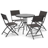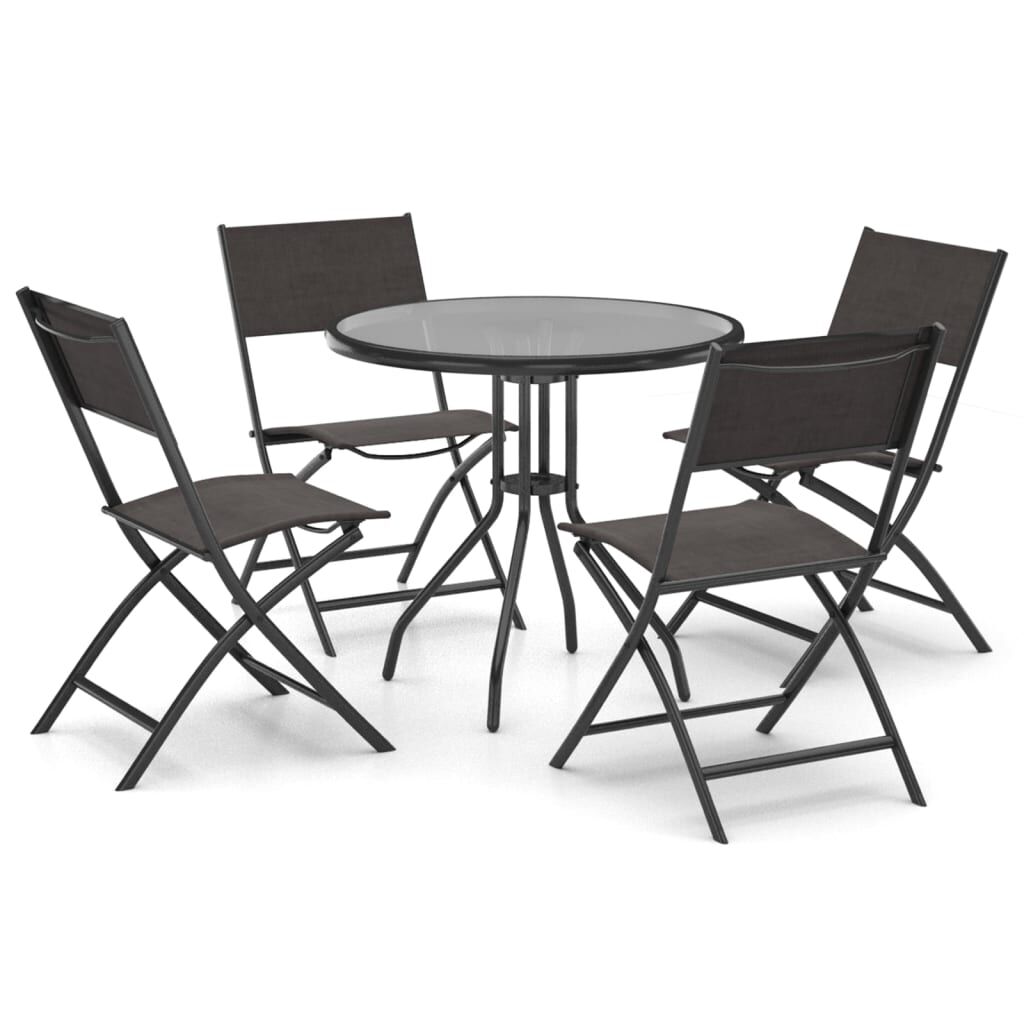 $267.83With a stylish design and a durable steel frame, this dining furniture set is a perfect choice for your outdoor living space. The simple elegance of this dining set makes everyday dinners special. This garden dining set features a powder-coated steel frame, which makes the table and chairs stable and durable. The comfortable dining chairs are upholstered in strong and easy-to-clean textilene fabric. The chairs are also stackable to save space when not in use. Note: In order to extend the life of your outdoor furniture, we recommend you to clean it regularly and do not leave it outdoors without protection unnecessarily.Clean: Use a mild soap solution.Storing: If possible, store in a cool, dry place indoors. If the product is stored outdoors, protect it with a waterproof cover. Wipe and dry the excess water or snow from flat surfaces after a rain or snowfall. Allow sufficient air circulation to avoid moisture-related damage.