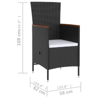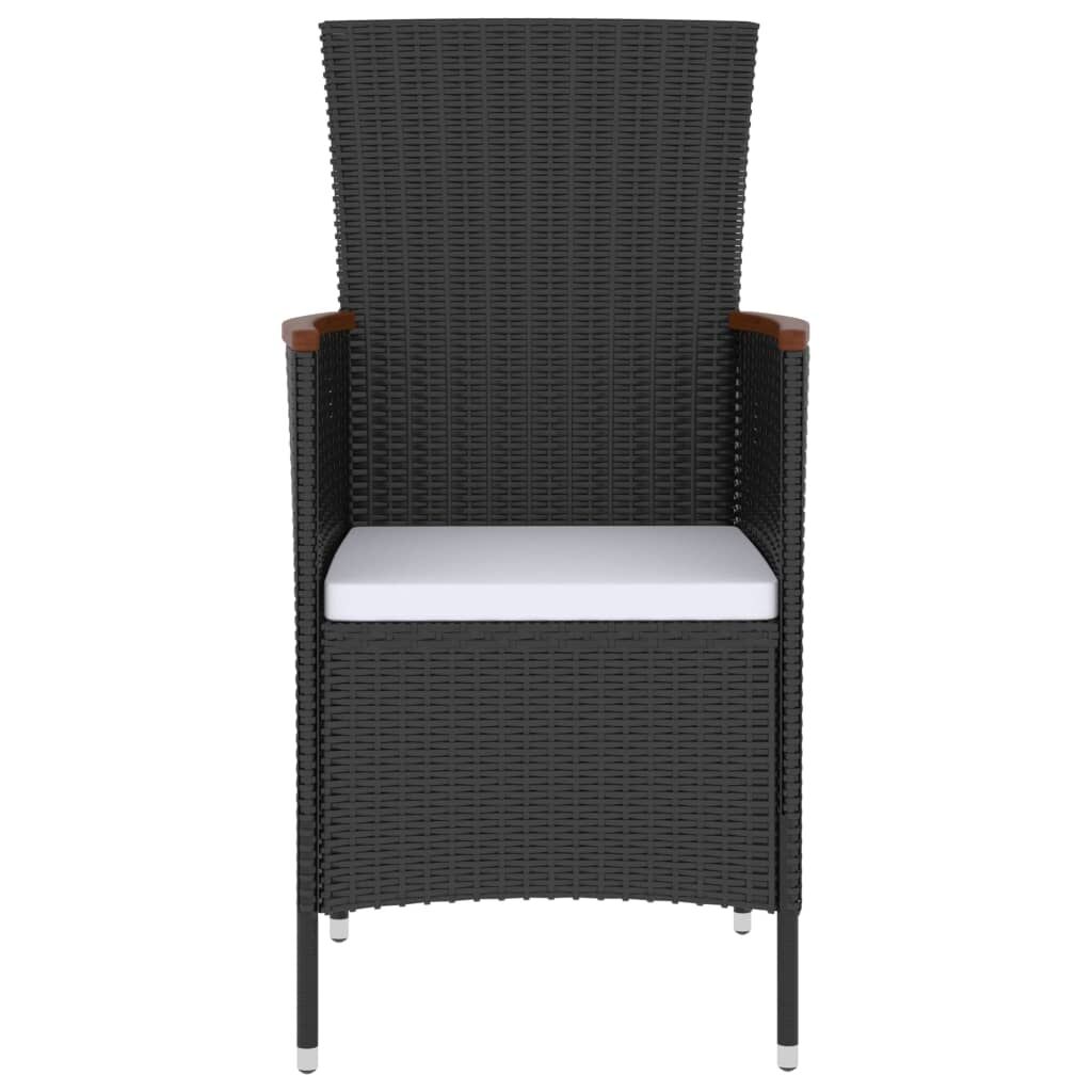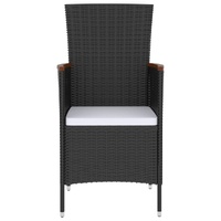 $754.22This outdoor dining set, with an elegant and contemporary design, is an eye-catching addition to your outdoor living space. This garden furniture set features a sturdy powder-coated steel frame, which is very stable and durable. The PE rattan makes this dining set easy to clean, hardwearing and suitable for daily outdoor use. The tabletop is made of solid acacia wood, a tropical hard wood, which is weather-resistant and durable. The reclining chairs offer the utmost seating comfort and great support. The backrest is easily adjustable as per your desire by using the button on the side. Additionally, the thick and soft seat and back cushions are also highly comfortable. The low-maintenance polyester cushion covers can be easily removed and washed. Note: We recommend covering the set in the rain, snow and frost for extended life.