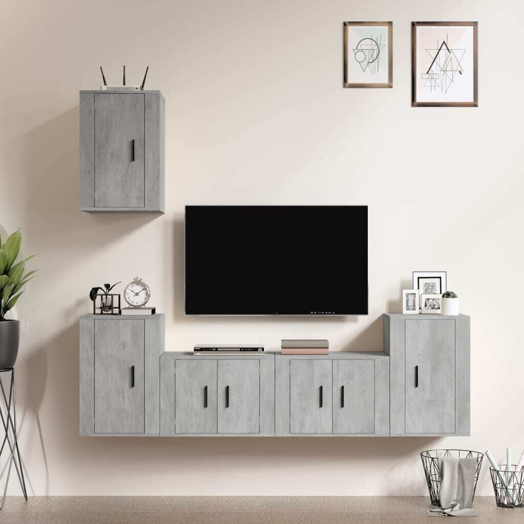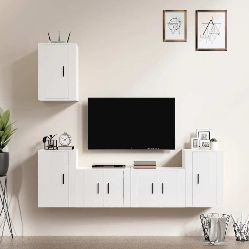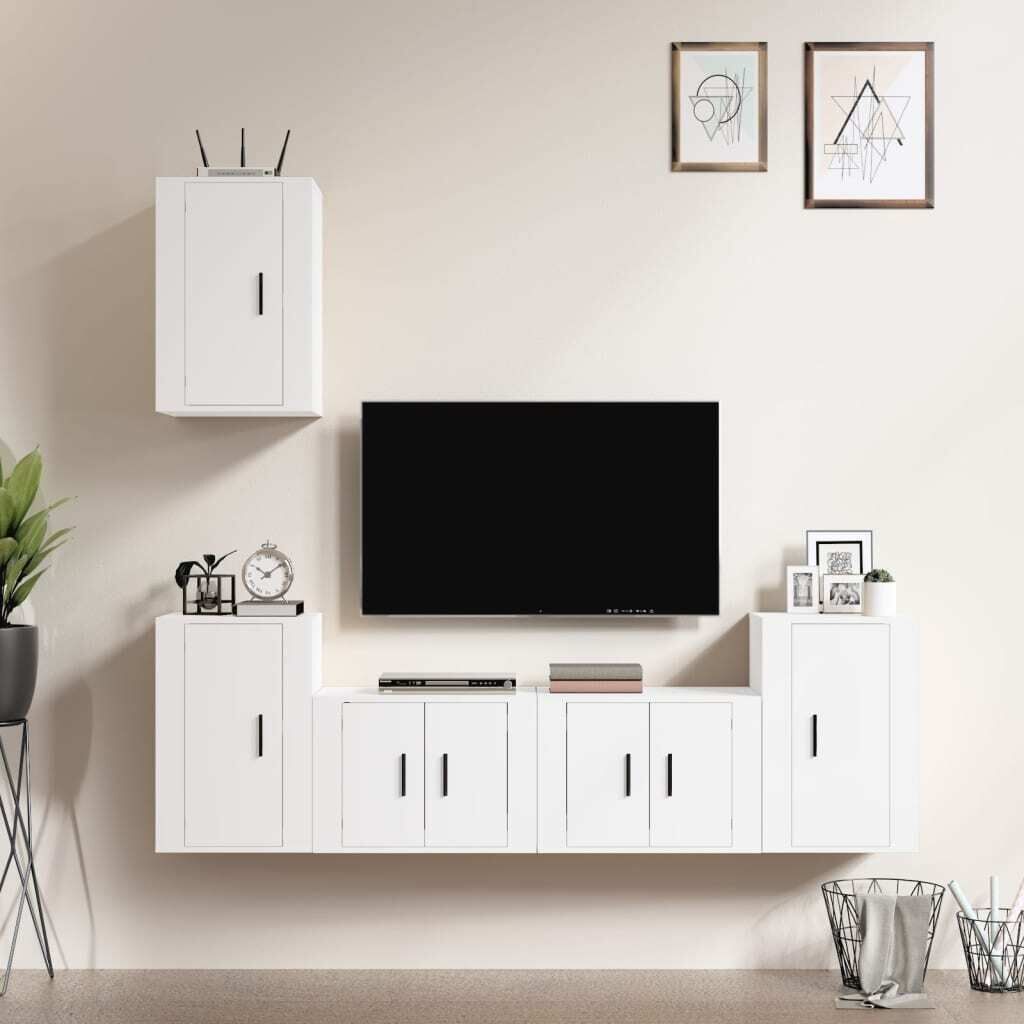$282.14This classic TV cabinet set is designed to be a focal point of your room, featuring a trendy yet practical design. Sturdy material: The engineered wood is of exceptional quality with smooth surface and also features strength, stability and resistance to moisture.Ample storage space: The TV stand set provides ample storage space to keep all your magazines, DVDs and any other items well organised.Wall-mounted design: The TV unit doesn't take up any floor space. You can hang it on the wall easily. Good to know:To make assembly as easy as possible, each product is delivered with a manual.Screws and plugs for inside the wall are not included. We advise to find and use screws and plugs suitable specifically for your walls. If you're not sure, you can consult with a professional. Please read and follow each step of the instructions.
