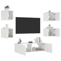 $273.41These TV wall cabinets with LED lights are the perfect solution for your living space to maximise space and keep the floor areas uncluttered. Durable material: The engineered wood is of exceptional quality with smooth surface and also features strength, stability and resistance to moisture. Made of engineered wood, these floating TV units are sturdy and durable.Ample storage space: The TV wall units have ample storage space to place your DVD players, books, magazines or other decorative items.RGB LED lights: The wall media units are equipped with vibrant RGB LED lights. With various customisable menus, you can effortlessly change the colour of the lights and even set them to adjust automatically.Wall-mounted design: These TV units with storage can be wall-mounted to add extra storage space. That way, you can maximise your floor space and keep the area clean. Good to know:Screws and plugs for inside the wall are not included. We advise to find and use screws and plugs suitable specifically for your walls. If you're not sure, you can consult with a professional. Please read and follow each step of the instructions.The product has a USB connector that requires a certified 5V USB power source (not included).