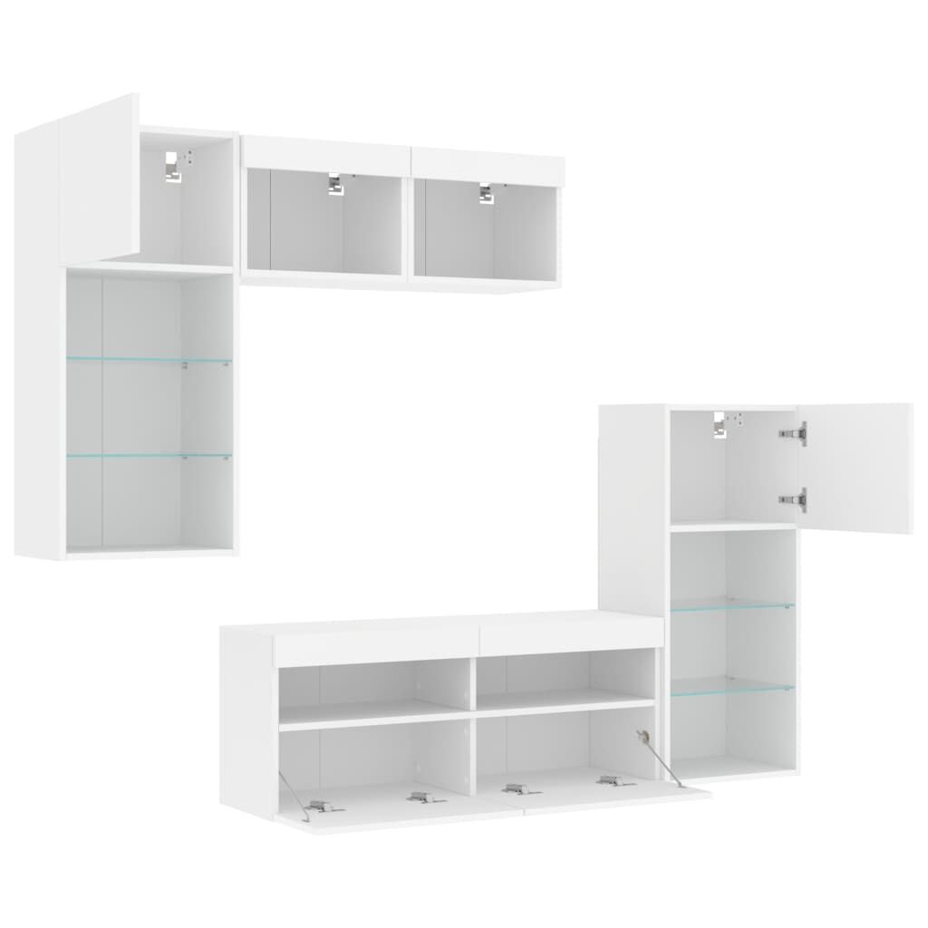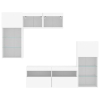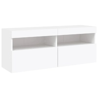 $390.59These TV wall units are the perfect solution for your living space to maximise space and keep the floor areas uncluttered. Sturdy material: The engineered wood is of exceptional quality with a smooth surface and also features strength, stability and resistance to moisture.RGB LED lights: The TV unit is equipped with vibrant RGB LED lights. With various customisable menus, you can effortlessly change the colour of the lights and even set them to adjust automatically. These LED lights not only enhance the contemporary look of the floating TV cabinet but also add to its trendy appeal.Wall-mounted design: The television unit can be wall-mounted to add extra storage space. That way, you can maximise your floor space and keep the area clean.Ample storage space: The floating TV unit provides ample space to store your daily essentials such as books, DVDs, magazines, media supplies and other items neatly organised and within easy reach.Versatile design: You can use it as a TV cabinet or mount it on the workplace wall for convenient storage of tools or other miscellaneous items. Also, it transforms an empty wall into a design feature. Good to know:Screws and plugs for inside the wall are not included. We advise to find and use screws and plugs suitable specifically for your walls. If you're not sure, you can consult with a professional. Please read and follow each step of the instructions.The product has a USB connector that requires a certified 5V USB power source (not included).