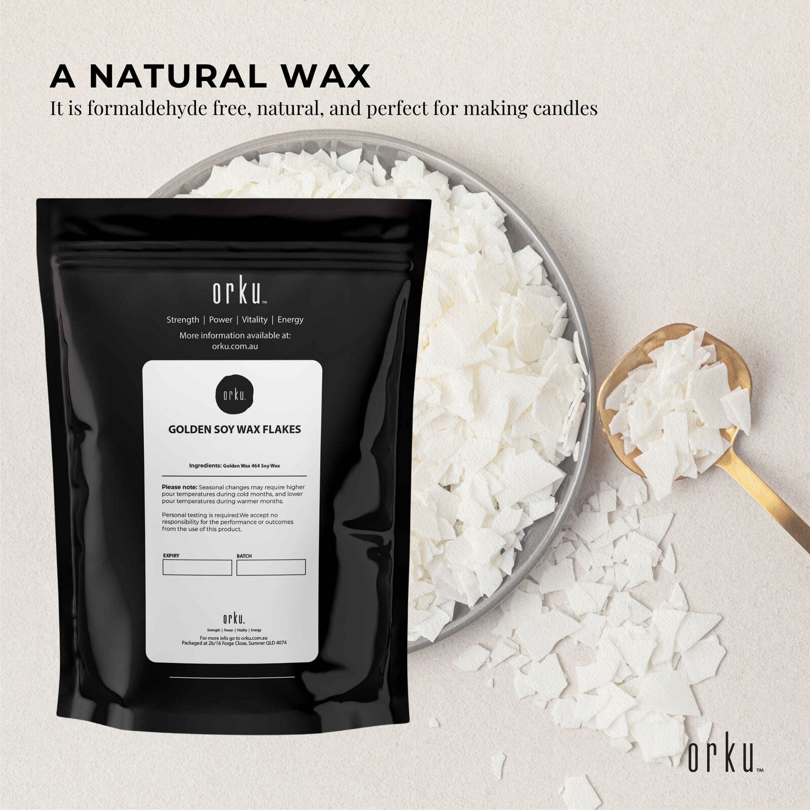 Easy to use professional grade Golden Wax 464 Soy wax is a hydrogenated soy oil and contains a soy-based additive.ÊIt is 100% pure Soy wax and is a natural alternative vegetable wax and kosher. The soy-based additive enables the soy to be poured at a hotter temperature (around 75 C) helping to reduce frosting and increasing FO percentage (fragrance oil).