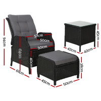 $574.73Now you can really sit back and chill in the outdoors with the Gardeon Wicker Recliner Set. Comprising two oversized recliners, two matching ottomans and a handy side table, the outdoor ensemble is everything you need for relaxation in elegant wicker style. The set is made of UV-resistant and weather-resistant PE wicker so that you never have to worry about rust, corrosion or weathering issues. The heavy-duty powder-coated steel frame is sturdy and hardy and will stand up to robust use easily. More importantly, the recliner has an adjustable backrest to suit your angle of rest. Better still, the seat cushion is made of high-density foam for ultra-comfort while the zipped cover is weather-resistant, removable and washable. Not least, the useful ottoman is just perfect for putting your feet up as you sip your latte or Bordeaux placed next to you on the tempered glass top side table. Yes, it is indeed paradise under the sun, moon and stars. Have it outdoors or indoors, the wicker recliner set is equally at home with its exquisite design and unique presence for any home décor enthusiast.