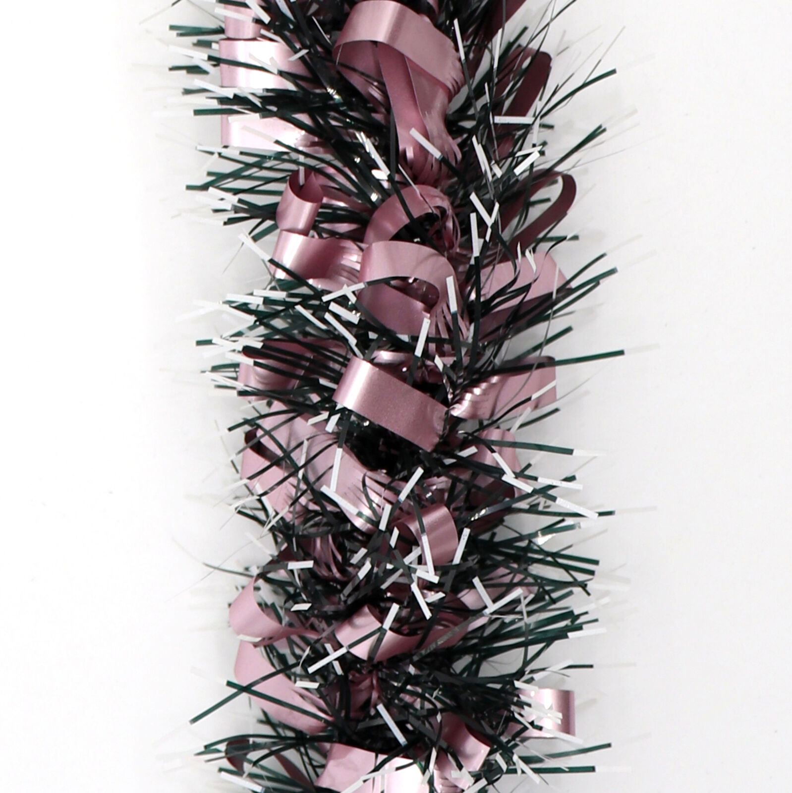 5x 2.5m Christmas Tinsel Xmas Garland Sparkly Snowflake Party Natural Home Décor, Bows (Black Pink)