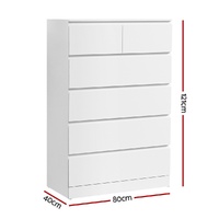 $184.49Introducing the Artiss Pepe Chest of Drawers, a contemporary piece to suit your modern bedroom. Made with a high-density particleboard frame for high durability, the chest of drawers is designed to last. With 6 spacious drawers, each fitted with a smooth glide mechanism, it provides ample storage to keep your space organized and clutter-free. The drawer runners feature an anti-rust coating to ensure ease of use. This chest of drawers, offering a blend of style and utility, is an unmissable addition to your furniture ensemble.
