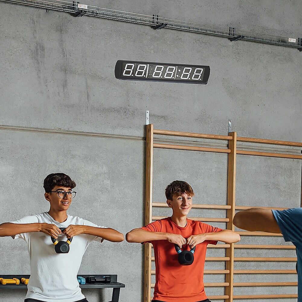$376.64This digital timer boasts extremely large brightly lit digits; the display itself is 650mm long and 120mm wide. The entire unit is 730mm long, 160mm wide and 40mm thick.