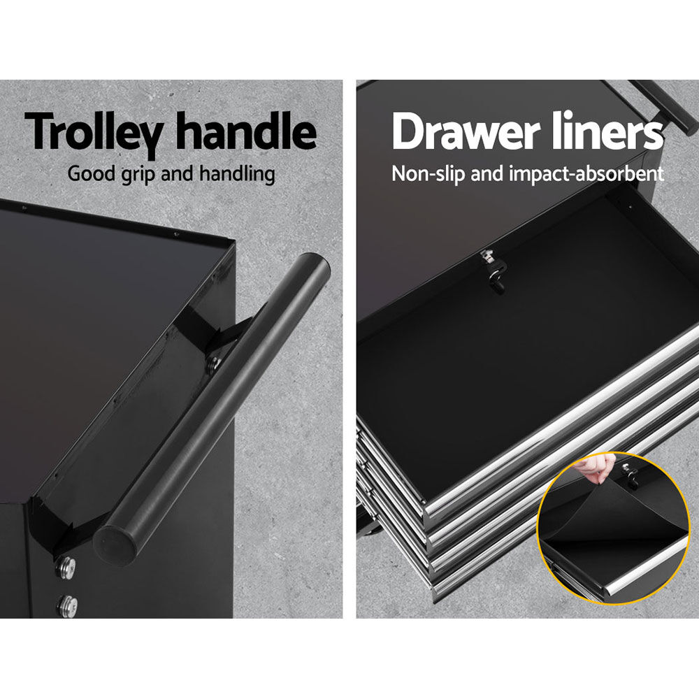 $185.39This robust, multi-drawer Giantz Tool Trolley is an essential for any workshop. Crafted from durable steel, it features smooth ball-bearing slides for easy access and a secure lock system for safety. Its spacious design accommodate tools of all shapes, complete with non-slip liners. The chest is also mounted on omni-directional castors with locakble front wheels, ensuring a smooth maneuverability and stable positioning. Sleek and functional, it's perfect for organizing and protecting your valuable tools.