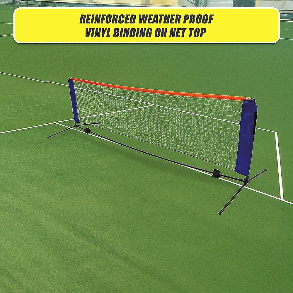 The portable tennis net and post system is reasonably priced, built with quality and designed to last. The steel tube frame construction is cleverly designed with unique interlocking sections for added strength. Set it up or take it down in just minutes. Your children can learn the sport of tennis in the backyard, in the park or even in an indoor facility.
