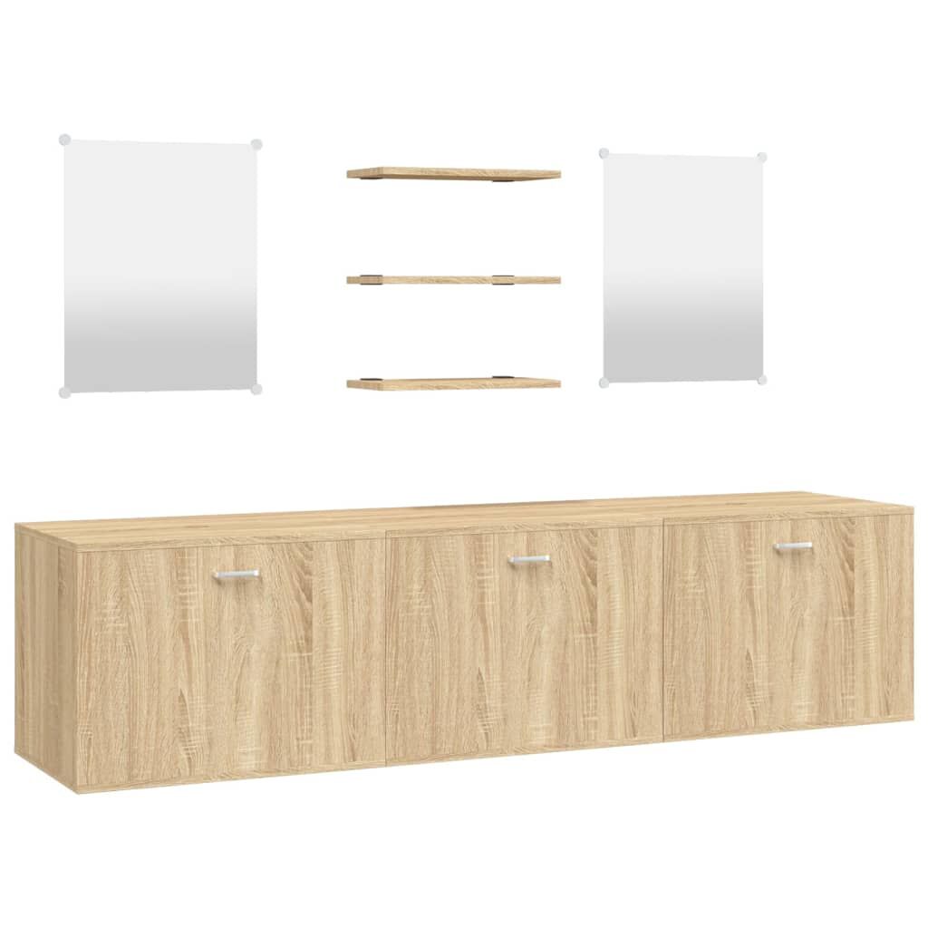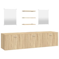 $287.09This trendy bathroom furniture set is meant to be an excellent addition to your bathroom, giving it a tidy and striking appearance! Durable material: The engineered wood is of exceptional quality with smooth surface and also features strength, stability and resistance to moisture. Extra storage: The bathroom cabinet offers extra storage space to store the essentials in your bathroom. The top of the cabinet is ideal for placing the wash basin. Wall-mounted function: The cabinet doesn't take any floor space. You can hang it on the wall easily. Practical mirror: Use the included mirror to neat your daily dressing. It also adds an excellent appearance to your home decor. Good to know:The wash basin is not included in the delivery. The drain is included in the delivery.Screws and plugs for inside the wall are not included. We advise to find and use screws and plugs suitable specifically for your walls. If you're not sure, you can consult with a professional. Please read and follow each step of the instructions.