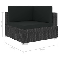 This rattan sofa set combines style and functionality, and will become the focal point of your garden or patio. The whole furniture set is designed to be used outdoors year-round. Thanks to the weather-resistant and waterproof PE rattan, the lounge set is easy to clean, hard-wearing and suitable for daily use. The seat set features a sturdy powder-coated steel frame, which is highly durable. It is also lightweight and modular, which makes it completely flexible and easy to move around to suit any setting. The thick, removable cushions are highly comfortable. Delivery includes 2 corner sofas, 1 centre sofa, 1 ottoman, 1 armchair, 1 tea table, 5 seat cushions and 6 back cushions. Note: We recommend covering the set in the rain, snow and frost.