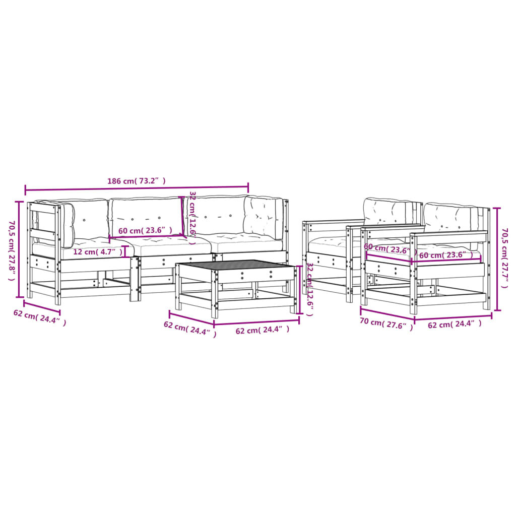 $828.89This wooden garden lounge set, standing out with the slatted design and soft cushions, will make a great addition to your garden, patio, or terrace for enjoying a cosy time with your family or friends. Solid pine wood: Solid pine wood is a beautiful natural material. Pine wood has a straight grain, and the knots give the material its signature, rustic look.Sturdy and stable frame: The wooden frame makes the lounge set sturdy and stable for daily outdoor use.Comfortable seat experience: The backrest and armrest add extra seating comfort for the garden furniture set. Also, the thickly padded cushions provide comfort for your sitting time.Modular design: The sofa set is flexible and easy to move around. You can combine it with other modular segments in the webshop to create your own personal garden lounge set configurations! Good to know:To make sure your outdoor furniture stays beautiful, we recommend protecting it with a waterproof cover.