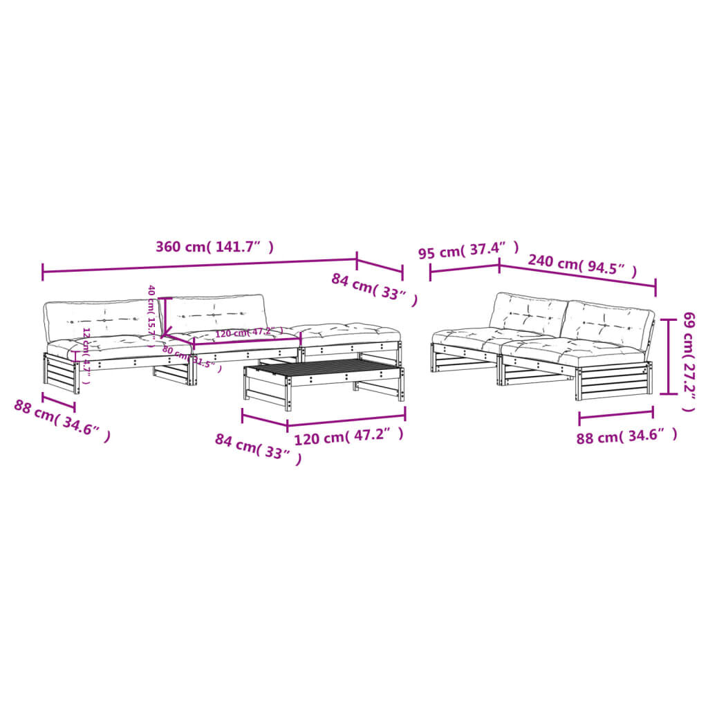 $1,633.49This wooden garden lounge set, standing out with the slatted design and soft cushions, will make a great addition to your garden, patio, or terrace for enjoying a cosy time with your family or friends. Solid douglas wood: Solid douglas wood is a highly durable wood that works well outdoors. Douglas wood is also strong enough to work with minimum care, even under the influence of the weather.Sturdy and stable frame: The wooden frames make the lounge set sturdy and stable for daily outdoor use.Comfortable seat experience: The backrest adds extra seating comfort for the garden furniture set. Also, the thickly padded cushion provides comfort for your sitting time.Modular design: The sofa set is flexible and easy to move around. You can combine it with other modular segments in the webshop to create your own personal garden lounge set configurations! Good to know:To make sure your outdoor furniture stays beautiful, we recommend protecting it with a waterproof cover.