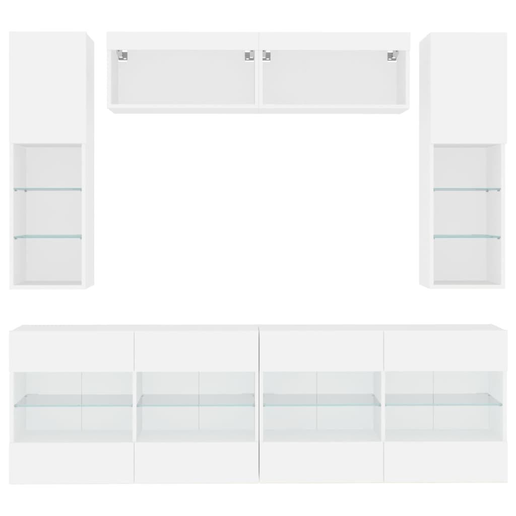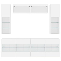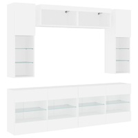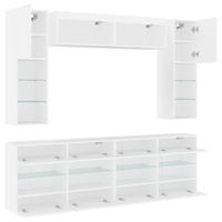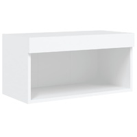 $536.60This TV wall cabinet set is a perfect solution for your living space to maximise space and keep the floor areas uncluttered. Sturdy material: The engineered wood is of exceptional quality with a smooth surface and also features strength, stability and resistance to moisture.RGB LED lights: The wall media unit is equipped with vibrant RGB LED lights. With various customisable menus, you can effortlessly change the colour of the lights and even set them to adjust automatically. These LED lights not only enhance the contemporary look of the floating TV unit but also add to its trendy appeal.Wall-mounted design: The LED cabinet can be wall-mounted to add extra storage space. That way, you can maximise your floor space and keep the area clean.Ample storage space: The TV wall unit provides ample space to store your daily essentials such as books, DVDs, magazines, media supplies and other items neatly organised and within easy reach.Versatile design: You can use it as a TV cabinet or mount it on the workplace wall for convenient storage of tools or other miscellaneous items. Also, it transforms an empty wall into a design feature. Good to know:Screws and plugs for inside the wall are not included. We advise to find and use screws and plugs suitable specifically for your walls. If you're not sure, you can consult with a professional. Please read and follow each step of the instructions.The product has a USB connector that requires a certified 5V USB power source (not included).