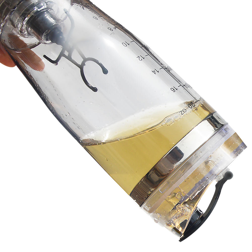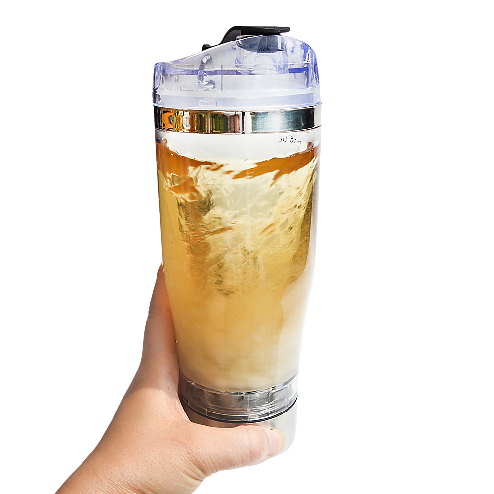 With its 600-millilitre capacity, it can handle a good-sized protein shake. Just pour in your liquid ingredient and press the power button. It'll create a vortexa mini-tornado inside your shaker. Next, add the protein powder and wait for a half-minute. You'll have a delicious smoothie or protein shake to power your day.