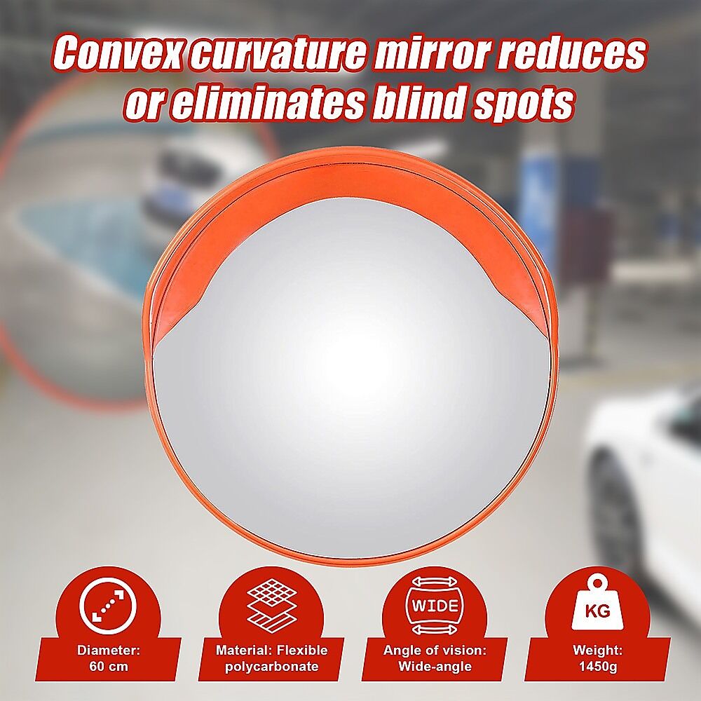 $77.39This 60-centimetre convex round blind spot mirror by Randy Travis Machinery helps to prevent accidents by reducing blind spots in parking garages, driveways, alleys, factories, hospitals, warehouses, or streets. Its convex, wide-angle surface increases the range of vision, allowing drivers and pedestrians to see and avoid hazards ahead, even when there is an obstructed view.