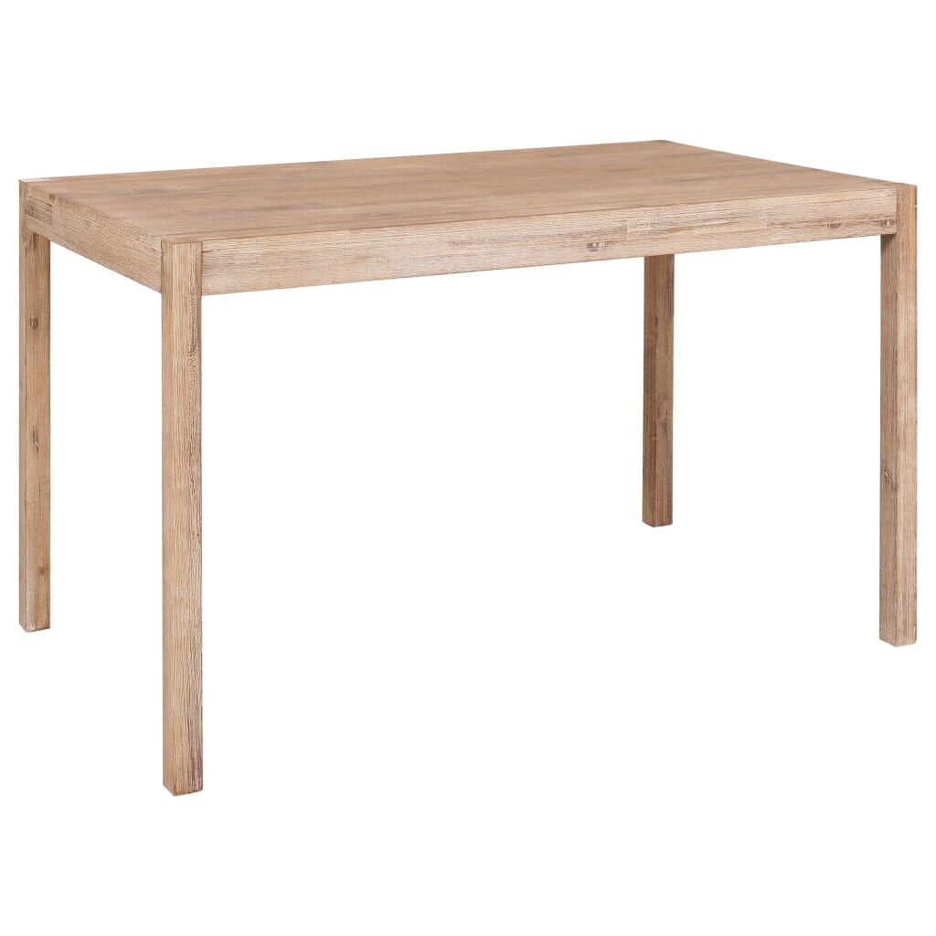 $870.29This 7-piece wooden dining set features an understated, timeless design and will add a touch of style to your interior. Made of solid acacia wood, the dining table and chairs are exceedingly stable and durable. Additionally, the backrests of the chairs add to seating comfort. This dining set is easy to clean with just a damp cloth. All table and chairs are easy to assemble. Delivery includes 1 table and 6 chairs.
