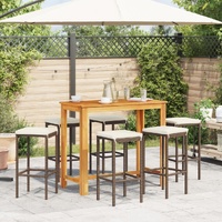 $327.31This garden bar set with an elegant and contemporary design will be a great choice for dining or relaxing in the garden. Durable material: PE rattan, also known as poly rattan, is a strong, low-maintenance synthetic material that looks like natural rattan. It's lightweight, easy to clean, and commonly used for outdoor furniture due to its durability and weather-resistant properties. Made of lightweight PE rattan, these bar stools are sturdy and easy to move. Sturdy tabletop: Solid acacia wood is a beautiful natural material. Acacia wood is a tropical hardwood, which is dense, sturdy, and durable. Made of solid acacia wood, this bar table is sturdy and stable. You can place your snacks, drinks and any of your favourite decorations. Comfortable seating experience: The thickly padded seat cushions and the built-in footrests add additional seating comfort for the stool. Removable and washable cover: These seat cushions feature removable covers for easy washing and maintenance. Good to know:To make sure your outdoor furniture stays beautiful, we recommend protecting it with a waterproof cover.