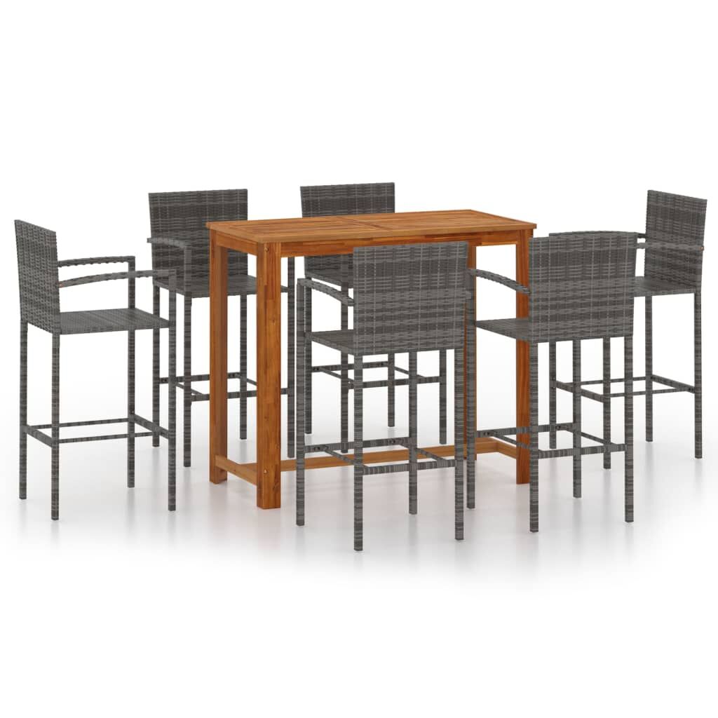 $843.50This garden bar set has an elegant design and is the focal point of your garden, patio or terrace. The table is made of solid acacia wood with an oil finish, which makes it stable, durable and easy to maintain. Featuring a powder-coated steel frame covered with weather-resistant PE rattan, the bar stool is sturdy and easy to clean. Note: We recommend covering the set during rain, snow and frost.