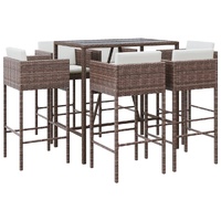 $895.58This trendy garden bar set, combining both style and function, is surely meant to be the centrepiece of your garden, patio, and any other living space. Weather-resistant material: PE rattan, also known as poly rattan, is weather resistant and easy to clean. It remains beautiful on the outside for a long period of time. It offers great quality, convenience and an aesthetic look.Comfortable seating: The bar stool is designed with footrest, backrest and armrests to offer you a comfortable seating experience. The soft seat and back cushions also add extra comfort.Tempered glass tabletop: The tabletop is made of tempered glass, making it easy to clean. Additionally, it offers excellent support for holding your drinks, snacks, and your favourite decorations.Sturdy and stable frame: The powder-coated steel frames make the pub set sturdy and stable for daily outdoor use.Wide applications: The bar table and stools, with its remarkable design, create a pleasant overall appearance that integrates effortlessly into any environment. Good to know:To make sure your outdoor furniture stays beautiful, we recommend protecting it with a waterproof cover.