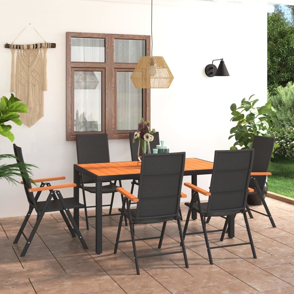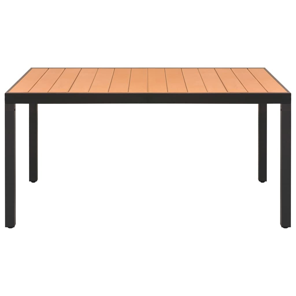 $852.80This garden dining set is an excellent choice for your garden, patio or terrace. The garden chair is made of PE rattan, making it weather-resistant and durable. The brown WPC armrests add to the chairs' stylish look. The table features a WPC tabletop with simple line, which is easy to clean and suitable for outdoor use. The aluminium frames also ensure the stability and studiness for this set. Thanks to the lightweight construction, this outdoor furniture set is easy to move. Note: We recommend covering the furniture set in the rain, snow or frost. Note: In order to extend the life of your outdoor furniture, we recommend you to clean it regularly and do not leave it outdoors without protection unnecessarily.Clean: Use a mild soap solutionStoring: If possible, store in a cool, dry place indoors. If the product is stored outdoors, protect it with a waterproof cover. Wipe and dry the excess water or snow from flat surfaces after a rain or snowfall. Allow sufficient air circulation to avoid moisture-related damage.