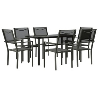 Enjoy a nice meal or afternoon tea in your outdoor space with this garden dining set! Featuring an elegant design, it will become the focal point of your garden and patio! Stable frame: The armchairs and table have a powder-coated steel construction, making them sturdy and stable.Durable material: Thanks to the strong textilene fabric, these outdoor chairs are weather-resistant and easy to clean.Sturdy tabletop: The tabletop is made of tempered glass, making it easy to clean. Additionally, the tabletop is perfect for placing snacks, drinks, vases, fruit bowls, or other decorative items.Comfortable seating experience: The ergonomic backrest and armrests give you a better seating experience. Good to know:To make sure your outdoor furniture stays beautiful, we recommend protecting it with a waterproof cover.