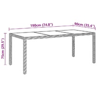 $789.56This garden dining set, featuring an elegant design, is an excellent choice for your dining or lounging on your patio or garden. Strong frame: Featuring a powder-coated steel frame covered with weather-resistant PE rattan with UV protection, the table and chairs are durable and stable.Comfortable chairs: The garden chairs are designed in a more ergonomic shape for maximum comfort. Cushions are included for added support.Practical table: The tabletop is made of tempered glass in strong support, easy to clean and maintain. Note:In order to extend the life of your outdoor furniture, we recommend you to clean it regularly and do not leave it outdoors without protection unnecessarily.Clean: Use a mild soap solution.Storing: If possible, store in a cool, dry place indoors. If the product is stored outdoors, protect it with a waterproof cover. Wipe and dry the excess water or snow from flat surfaces after a rain or snowfall. Allow sufficient air circulation to avoid moisture-related damage.