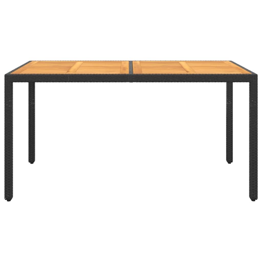 $747.71This garden dining set, featuring an elegant design, is an excellent choice for your dining or lounging on your patio or garden. Strong frame: Featuring a powder-coated steel frame covered with weather-resistant PE rattan with UV protection, the table and chairs are durable and stable.Comfortable chairs: The garden chairs are designed in a more ergonomic shape for maximum comfort. Cushions are included for added support.Practical table: The tabletop is made of solid acacia wood in strong support, easy to clean and maintain. Note:In order to extend the life of your outdoor furniture, we recommend you to clean it regularly and do not leave it outdoors without protection unnecessarily.Clean: Use a mild soap solution.Storing: If possible, store in a cool, dry place indoors. If the product is stored outdoors, protect it with a waterproof cover. Wipe and dry the excess water or snow from flat surfaces after a rain or snowfall. Allow sufficient air circulation to avoid moisture-related damage.
