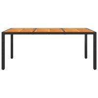 $798.86This garden dining set, featuring an elegant design, is an excellent choice for your dining or lounging on your patio or garden. Strong frame: Featuring a powder-coated steel frame covered with weather-resistant PE rattan with UV protection, the table and chairs are durable and stable.Comfortable chairs: The garden chairs are designed in a more ergonomic shape for maximum comfort. Cushions are included for added support.Practical table: The tabletop is made of solid acacia wood in strong support, easy to clean and maintain. Note:In order to extend the life of your outdoor furniture, we recommend you to clean it regularly and do not leave it outdoors without protection unnecessarily.Clean: Use a mild soap solution.Storing: If possible, store in a cool, dry place indoors. If the product is stored outdoors, protect it with a waterproof cover. Wipe and dry the excess water or snow from flat surfaces after a rain or snowfall. Allow sufficient air circulation to avoid moisture-related damage.