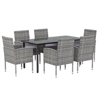 $675.17Enjoy a nice meal or afternoon tea in your outdoor space with this garden dining set! Weather-resistant material: PE rattan, also known as poly rattan, is weather resistant and easy to clean. It remains beautiful on the outside for a long period of time. It offers great quality, convenience and an aesthetic look.Sturdy frame: The powder-coated steel frames make the outdoor dining set sturdy and stable for daily outdoor use.Practical tabletop: The smooth tabletop of the dining table is made of tempered glass which is easy to clean with a damp cloth. Additionally, the sturdy tabletop is perfect for placing meals, drinks, and other decorative items.Comfortable design: Designed with curved backrests and armrests, these outdoor chairs provide maximum comfort.Extra comfort: The thickly padded cushions provide ultimate comfort during your sitting time. Note:In order to extend the life of your outdoor furniture, we recommend you to protect it with a waterproof cover.Each product comes with an assembly manual in the box for easy assembly.