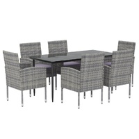 $699.35Enjoy a nice meal or afternoon tea in your outdoor space with this garden dining set! Weather-resistant material: PE rattan, also known as poly rattan, is weather resistant and easy to clean. It remains beautiful on the outside for a long period of time. It offers great quality, convenience and an aesthetic look.Sturdy frame: The powder-coated steel frames make the outdoor dining set sturdy and stable for daily outdoor use.Practical tabletop: The smooth tabletop of the dining table is made of tempered glass which is easy to clean with a damp cloth. Additionally, the sturdy tabletop is perfect for placing meals, drinks, and other decorative items.Comfortable design: Designed with curved backrests and armrests, these outdoor chairs provide maximum comfort.Extra comfort: The thickly padded cushions provide ultimate comfort during your sitting time. Note:In order to extend the life of your outdoor furniture, we recommend you to protect it with a waterproof cover.Each product comes with an assembly manual in the box for easy assembly.