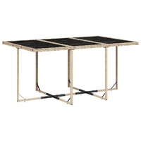 $590.54This garden dining set is a great choice for al fresco dining or just relaxing in the garden, backyard, or patio. Durable material: PE rattan, also known as poly rattan, is a strong, low-maintenance synthetic material that looks like natural rattan. It's lightweight, easy to clean, and commonly used for outdoor furniture due to its durability and weather-resistant properties.Compact storage: These chairs have a flap backrest that can be folded down, making it easy to store them under the table. When folded, they neatly fit under the table, forming a space-saving cube shape.Comfortable seat experience: This outdoor furniture, complete with thickly padded cushions, offers a comfortable seating experience.Removable and washable cover: These seat cushions feature removable covers for easy washing and maintenance. The cushion covers have a flap at the back for easy attachment to the backrests.Glass tabletop: The outdoor table's top is made from strong and durable tempered glass, making it easy to clean with a damp cloth and adding a touch of elegance to your outdoor space. Good to know:To make sure your outdoor furniture stays beautiful, we recommend protecting it with a waterproof cover.