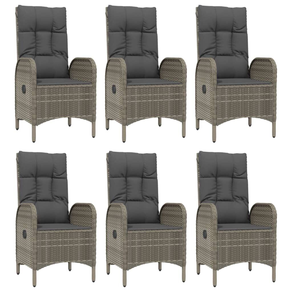 $1,218.29This trendy garden dining set, featuring an elegant and contemporary design, is a great choice for dining or relaxing in your garden. Weather-resistant material: PE rattan, also known as poly rattan, is weather resistant and easy to clean. It remains beautiful on the outside for a long period of time. It offers great quality, convenience and an aesthetic look.Sturdy frame: The powder-coated steel frames make the outdoor dining set sturdy and stable for daily outdoor use.Practical tabletop: The smooth tabletop of the garden table is made of tempered glass which is easy to clean with a damp cloth. Additionally, the sturdy tabletop is perfect for placing meals, drinks, and other decorative items.Reclining function: The garden chairs are specially designed with a reclining function so that you can adjust the backrest as per your comfort.Comfortable seat experience: The backrest adds extra seating comfort for the garden chair. Also, the thickly padded cushions provide comfort for your sitting time. Good to know:To make assembly as easy as possible, each product is delivered with a manual. Note:To make sure your outdoor furniture stays beautiful, we recommend protecting it with a waterproof cover.
