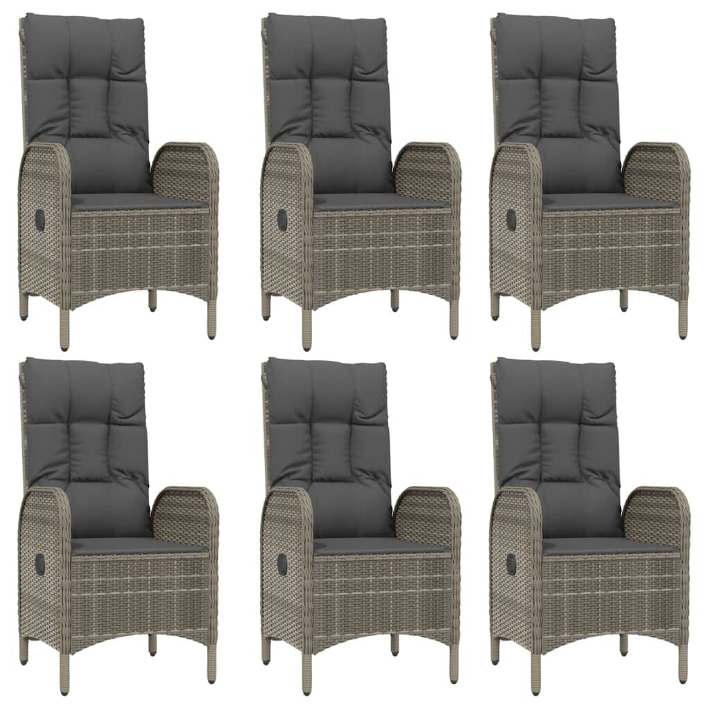 $1,195.97This trendy garden dining set, featuring an elegant and contemporary design, is a great choice for dining or relaxing in your garden. Weather-resistant material: PE rattan, also known as poly rattan, is weather resistant and easy to clean. It remains beautiful on the outside for a long period of time. It offers great quality, convenience and an aesthetic look.Sturdy frame: The powder-coated steel frames make the outdoor dining set sturdy and stable for daily outdoor use.Practical tabletop: The smooth tabletop of the garden table is made of tempered glass which is easy to clean with a damp cloth. Additionally, the sturdy tabletop is perfect for placing meals, drinks, and other decorative items.Reclining function: The garden chairs are specially designed with a reclining function so that you can adjust the backrest as per your comfort.Comfortable seat experience: The backrest adds extra seating comfort for the garden chair. Also, the thickly padded cushions provide comfort for your sitting time. Good to know:To make assembly as easy as possible, each product is delivered with a manual. Note:To make sure your outdoor furniture stays beautiful, we recommend protecting it with a waterproof cover.