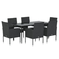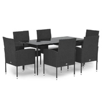 $631.46Enjoy a nice meal or afternoon tea in your outdoor space with this garden dining set! Weather-resistant material: PE rattan, also known as poly rattan, is weather resistant and easy to clean. It remains beautiful on the outside for a long period of time. It offers great quality, convenience and an aesthetic look.Sturdy frame: The powder-coated steel frames make the outdoor dining set sturdy and stable for daily outdoor use.Practical tabletop: The smooth tabletop of the dining table is made of tempered glass which is easy to clean with a damp cloth. Additionally, the sturdy tabletop is perfect for placing meals, drinks, and other decorative items.Comfortable design: Designed with curved backrests and armrests, these outdoor chairs provide maximum comfort.Extra comfort: The thickly padded cushions provide ultimate comfort during your sitting time. Note:In order to extend the life of your outdoor furniture, we recommend you to protect it with a waterproof cover.Each product comes with an assembly manual in the box for easy assembly.